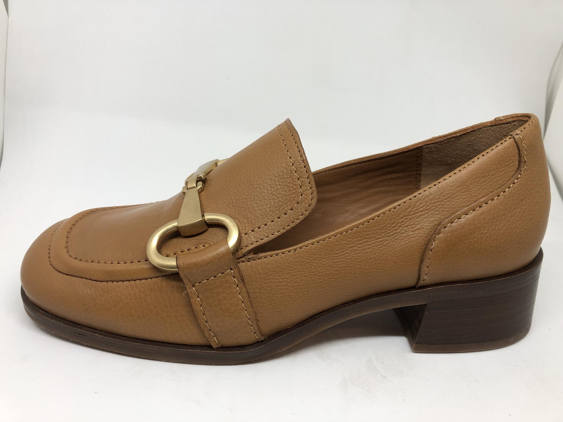 Mocassin talon 4 cm cuir cognac